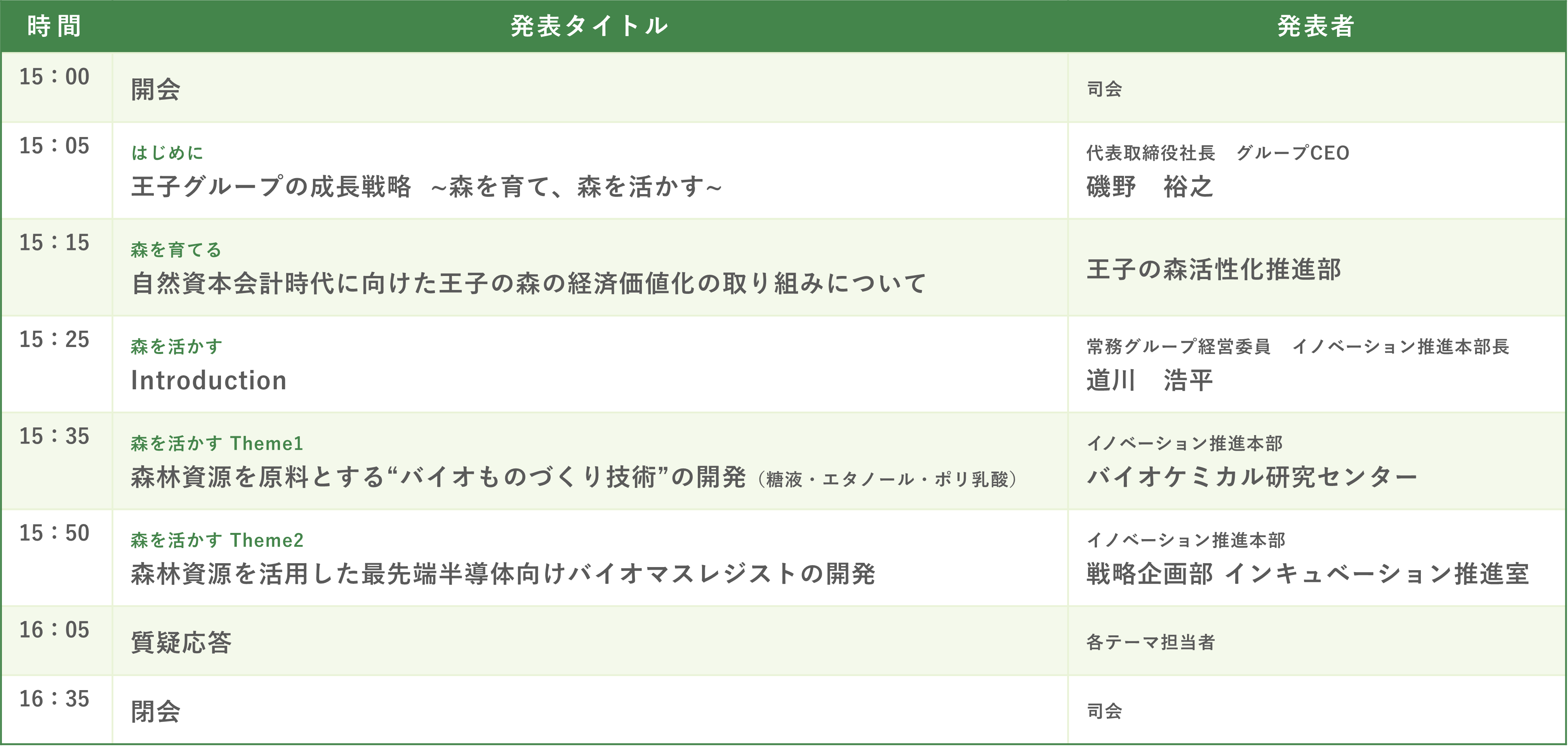 テーマは「王子グループの成長戦略~森を育て、森を活かす~」