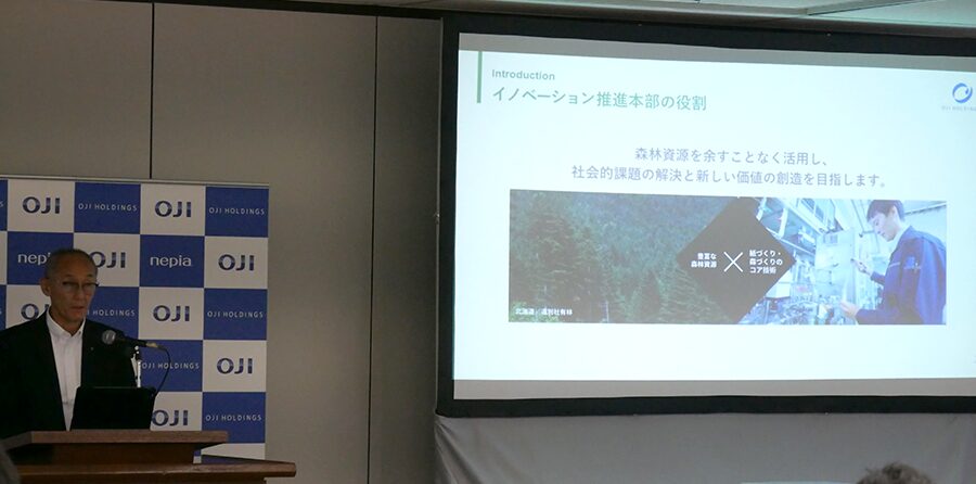 最初に、道川イノベーション推進本部長から、王子グループにおけるイノベーション推進本部の役割と、一昨年行われたIR説明会の振り返りについて説明がありました。