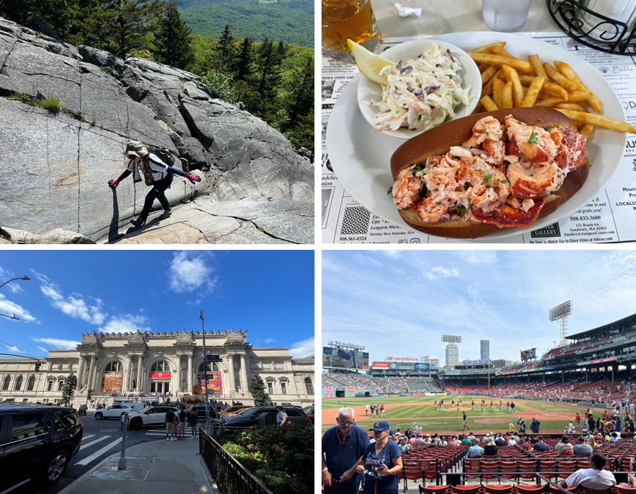 (左上)近場のMt. Monadnockでトレイル(右上)マサチューセッツ州名物のひとつ、ロブスターを使った料理